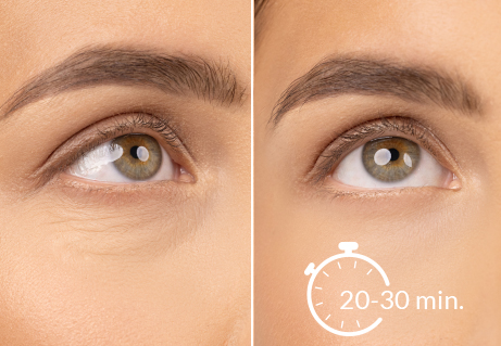 Zloženie náplasti s kolagénom, retinolom, ceramidmi a vitamínom C poskytuje komplexné omladzujúce a vyživujúce účinky. Už po prvom použití je pokožka hlboko hydratovaná, hladšia a pevnejšia. Pravidelné používanie pomáha redukovať tmavé kruhy a opuchy, zlepšuje pevnosť a rozjasňuje oblasť okolo očí, čím dodáva viditeľne mladší a oddýchnutejší vzhľad porovnateľný s výsledkami mezoterapie alebo karboxyterapie.